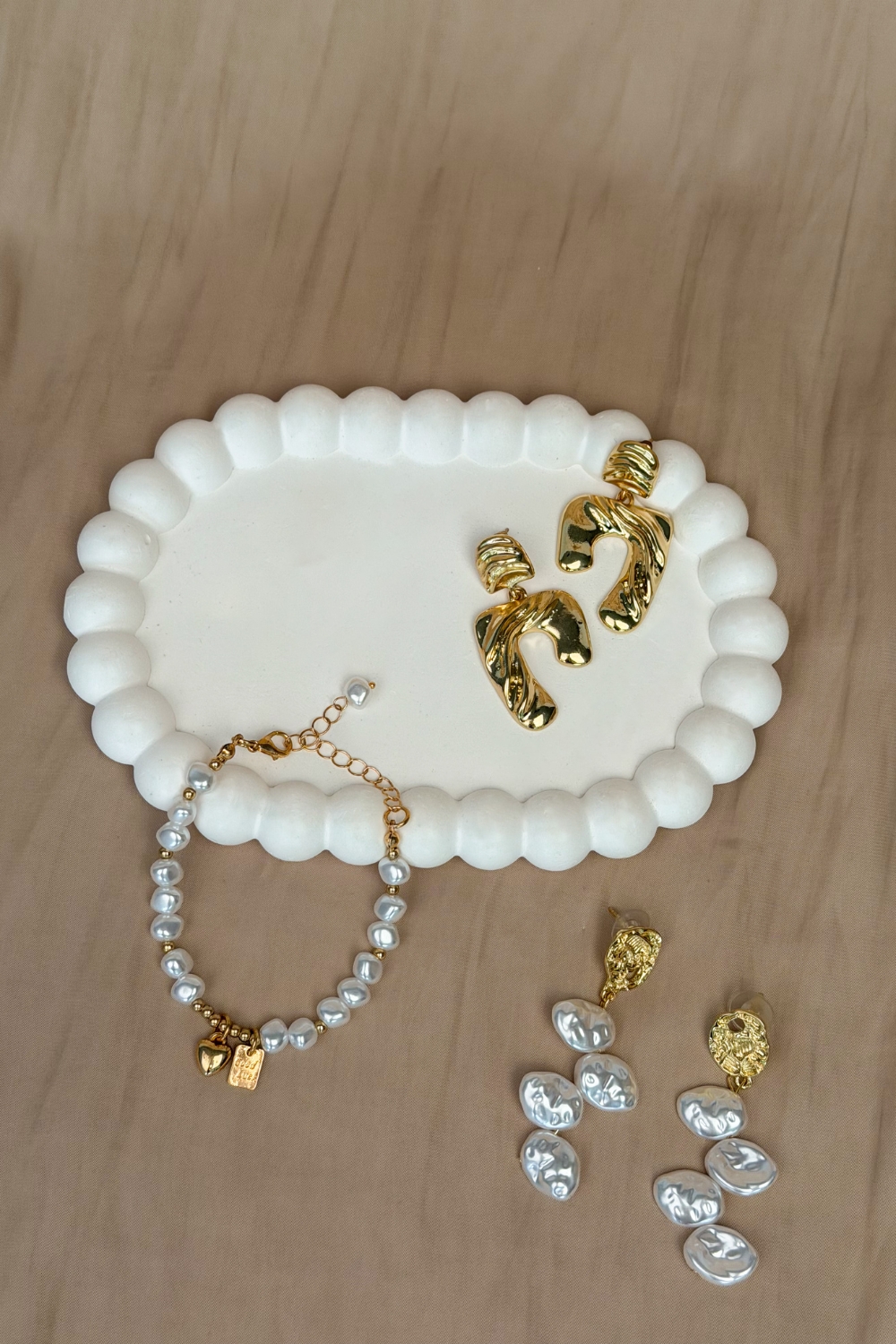 Aros con nácar y detalle dorado. Un diseño moderno y sofisticado que aporta luz y elegancia a cualquier look.