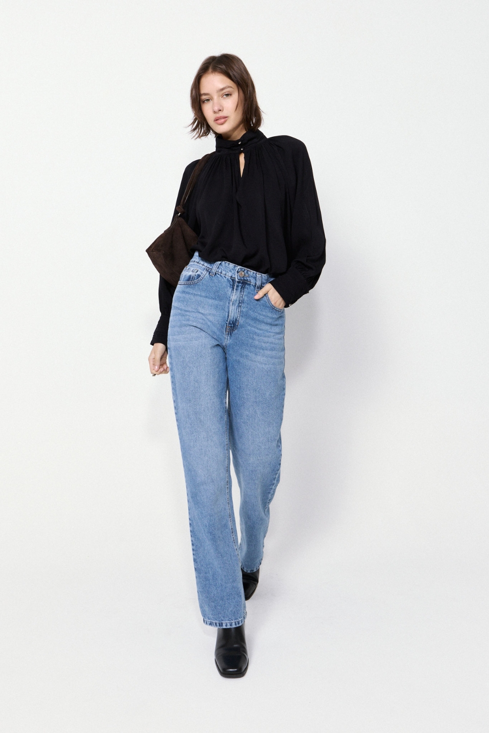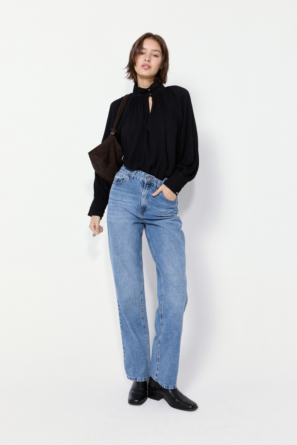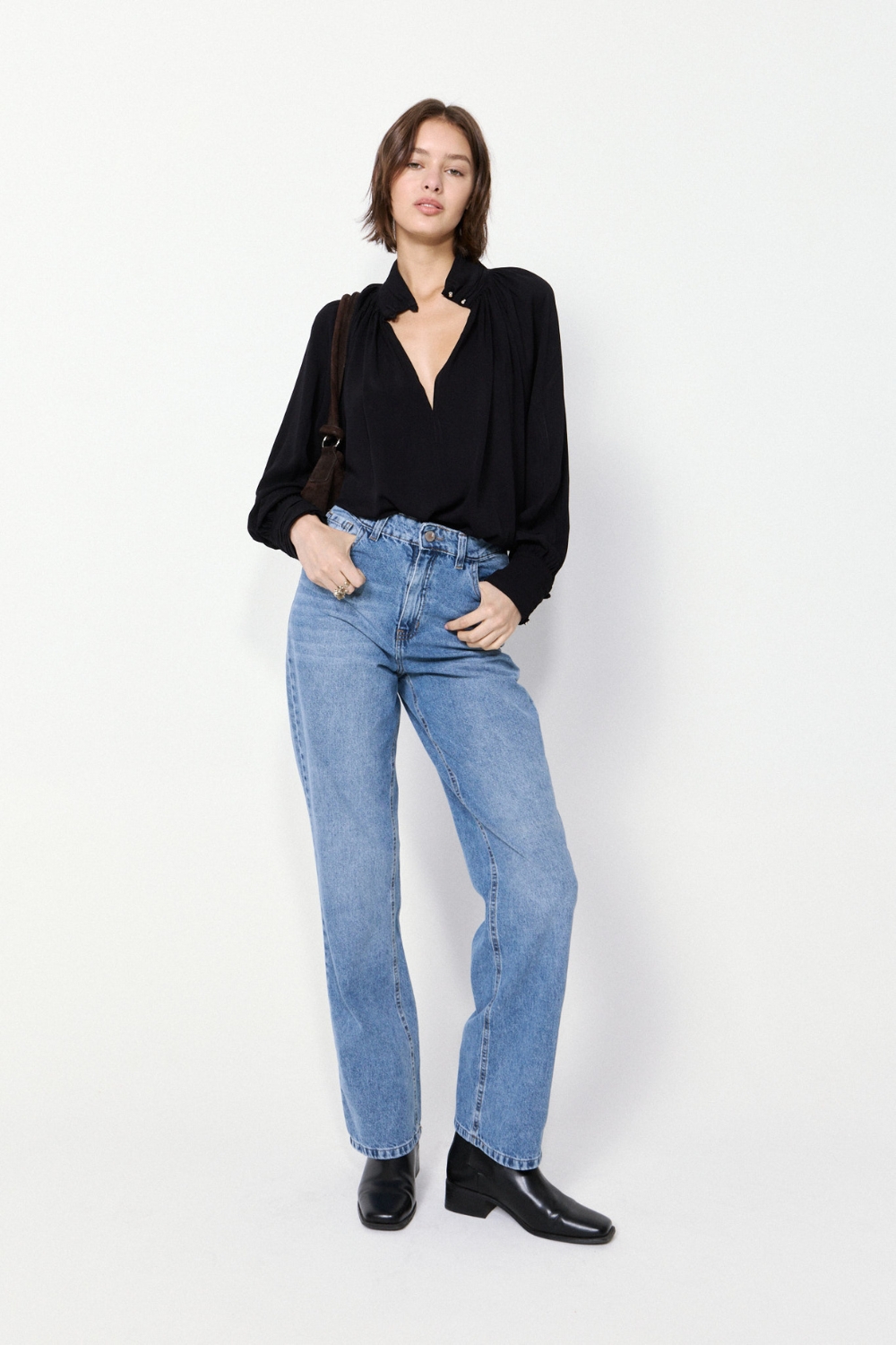 La Blusa Borough es una prenda con abertura delantera y delicados detalles drapeados que aportan un toque de sofisticación. Está confeccionada en un textil de excelente caída, y su calce relajado asegura comodidad durante todo el día, ideal para looks elegantes y versátiles.