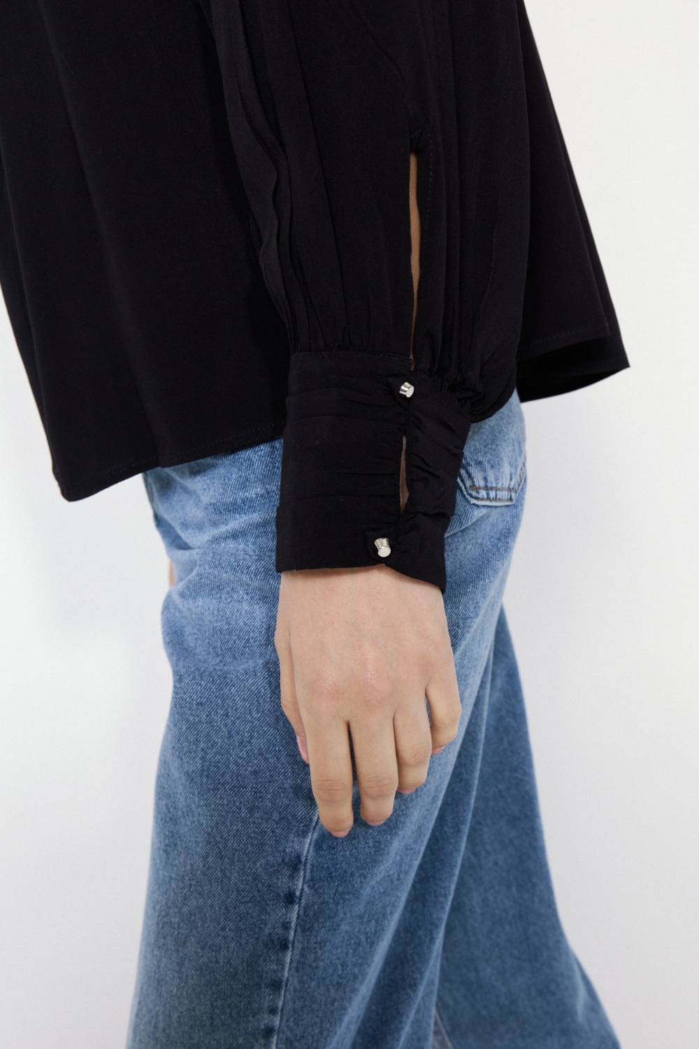 La Blusa Savage es una prenda sofisticada con abertura frontal y botones metálicos que aportan un toque moderno. Su textil con trama brinda textura y durabilidad, ideal para looks diarios o para ocasiones especiales.