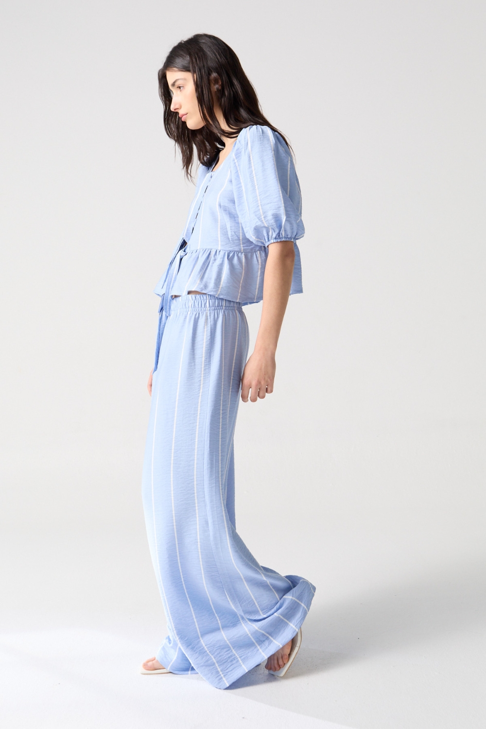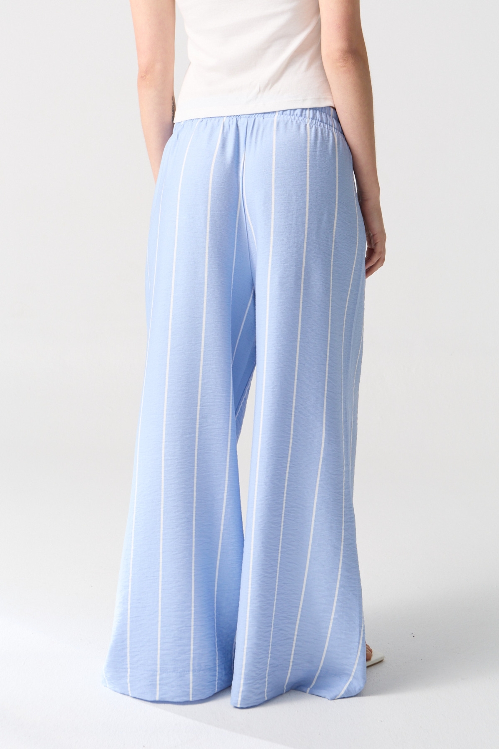 Pantalón fluido confeccionado en telas ligeras que aportan comodidad y movimiento. Su diseño moderno y versátil es ideal para looks casuales o formales.