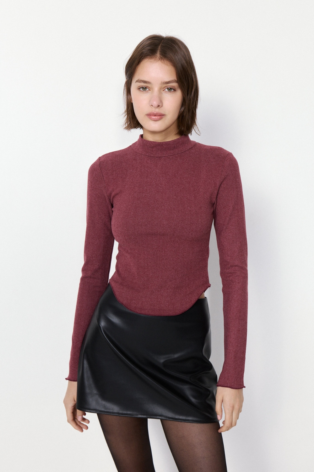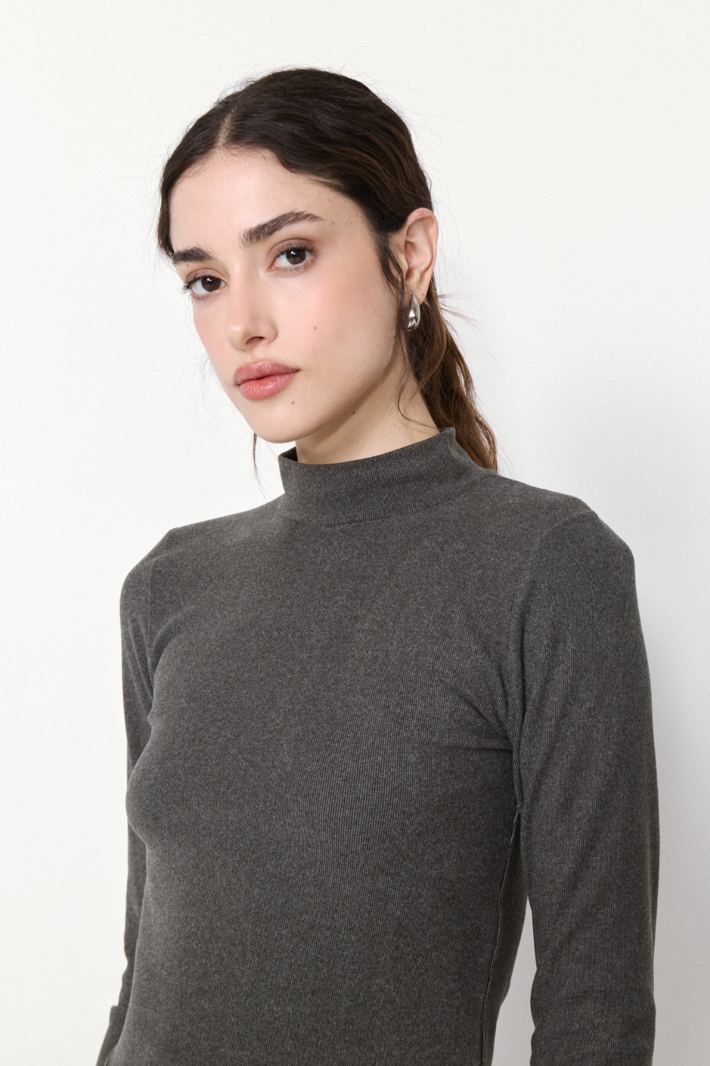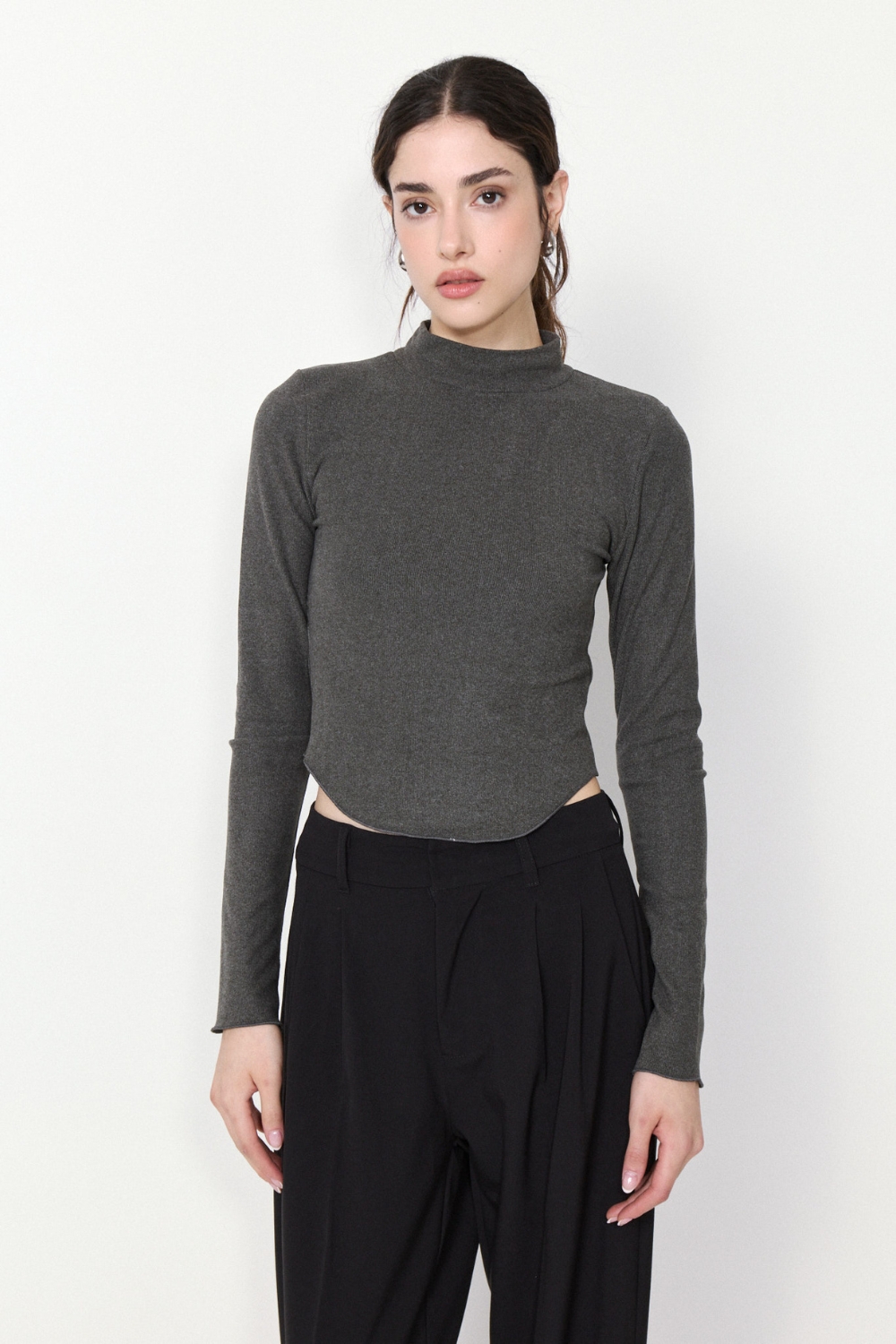 POLERA DYNAMO de manga larga en ribb elastizado con textura peach. Su ruedo en U con terminación rulotte y hilo al tono ofrece comodidad y estilo, perfecta para cualquier ocasión.