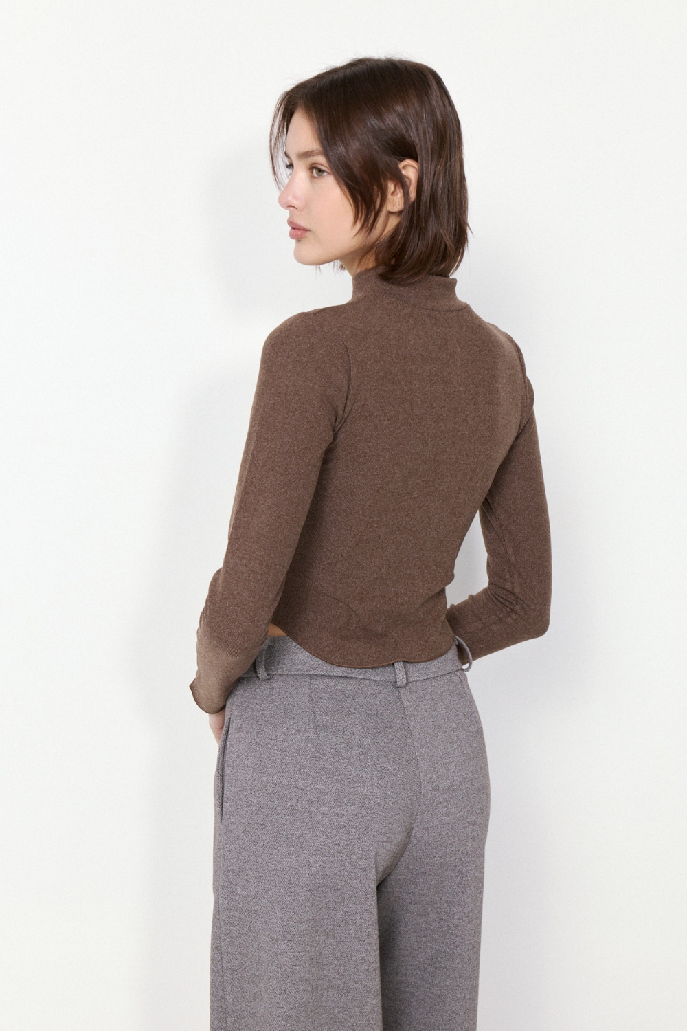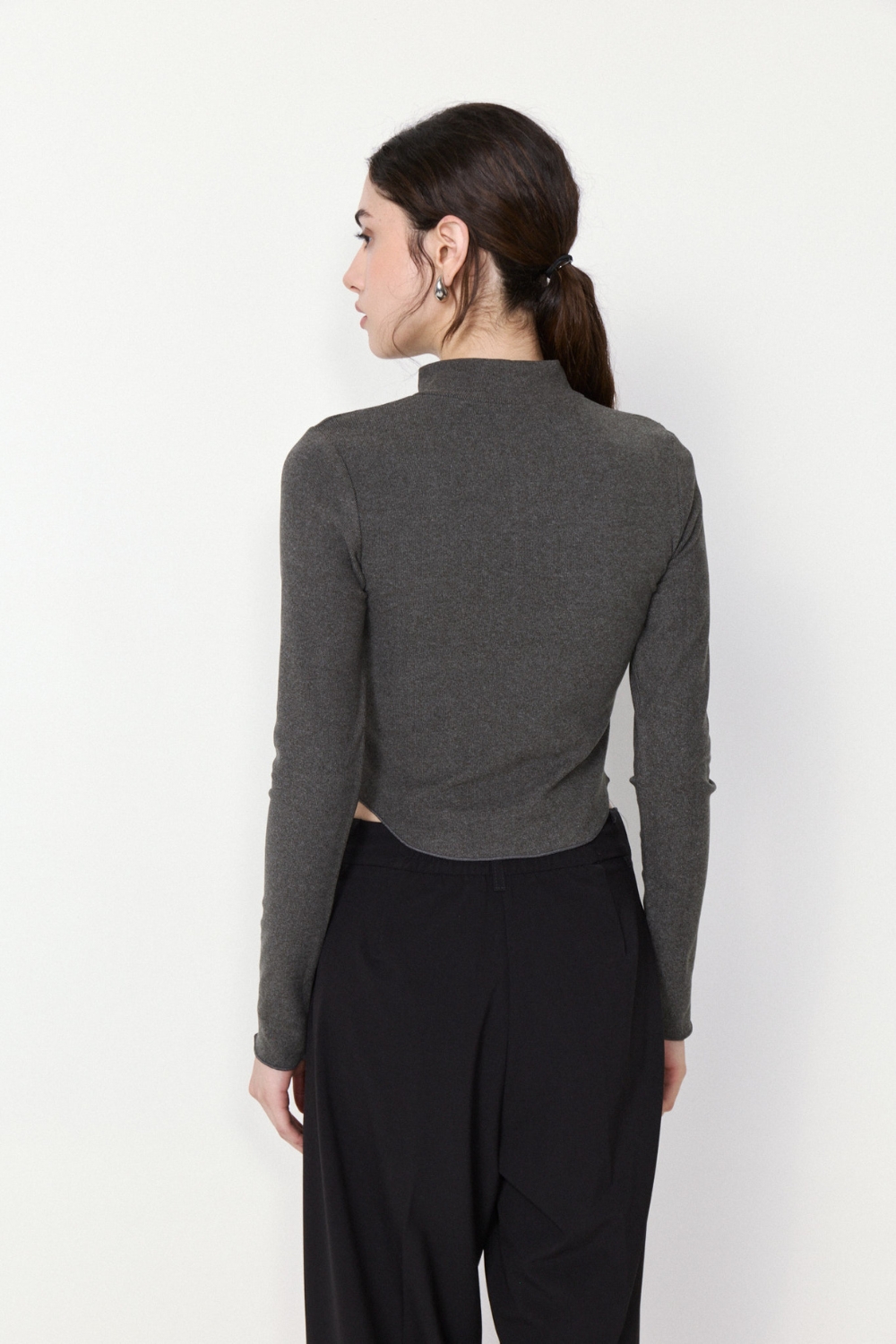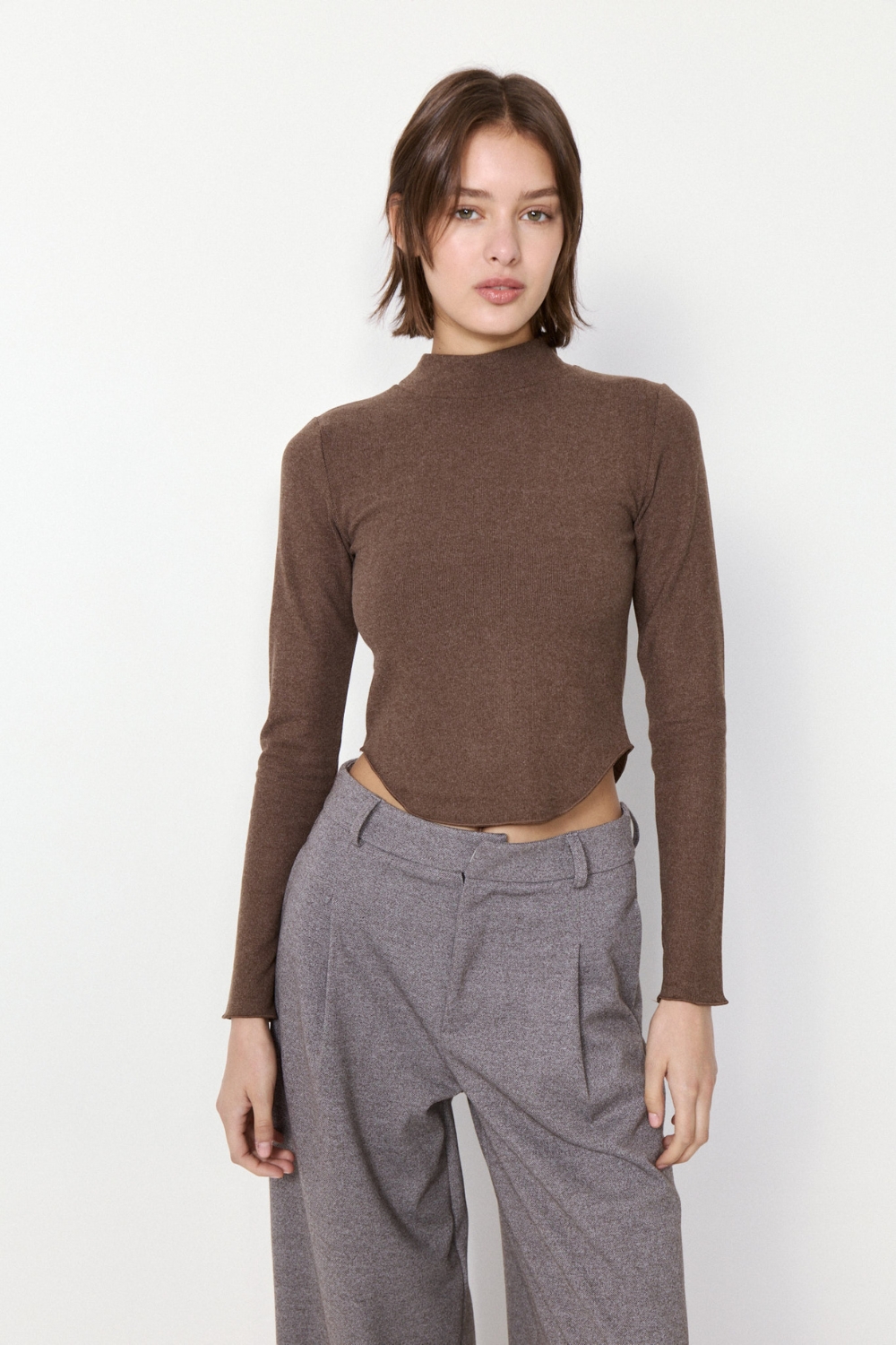 POLERA DYNAMO de manga larga en ribb elastizado con textura peach. Su ruedo en U con terminación rulotte y hilo al tono ofrece comodidad y estilo, perfecta para cualquier ocasión.