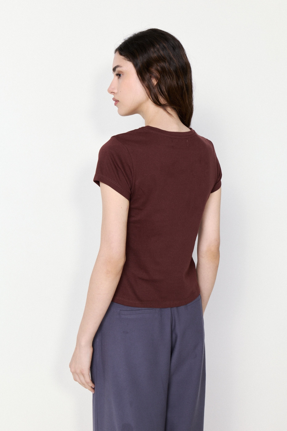 La REMERA DARLING es una prenda al cuerpo con escote redondo y manga corta. Confeccionada en ribb elastizado con viscosa, ofrece un ajuste cómodo y flexible.
