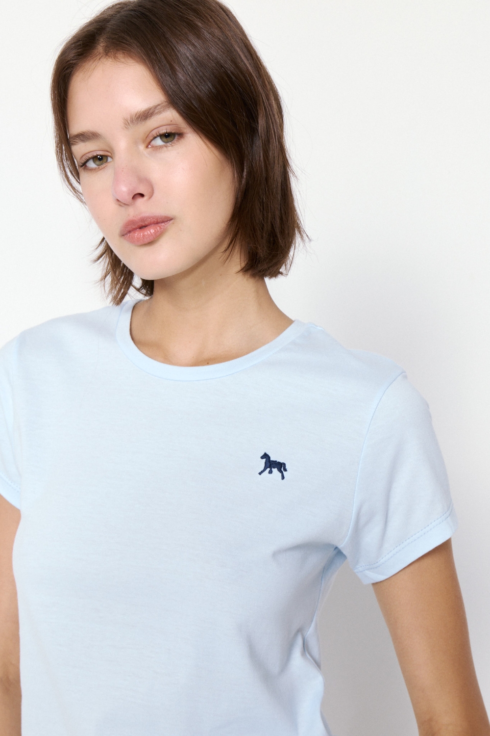 La REMERA HORSIE es una prenda esencial confeccionada en jersey 100% algodón, que ofrece un calce al cuerpo cómodo y fresco. Presenta un clásico escote redondo y mangas cortas, ideal para el uso diario. Su detalle distintivo es un delicado bordado de caballo, que suma un toque único y sofisticado. Perfecta para combinar con cualquier look casual.