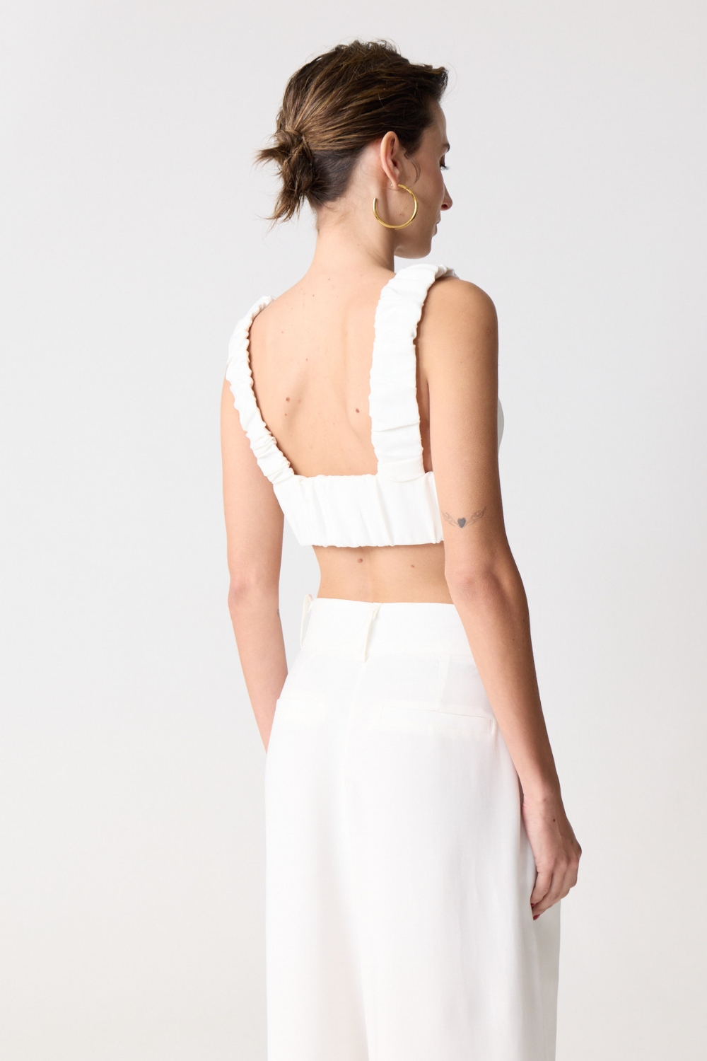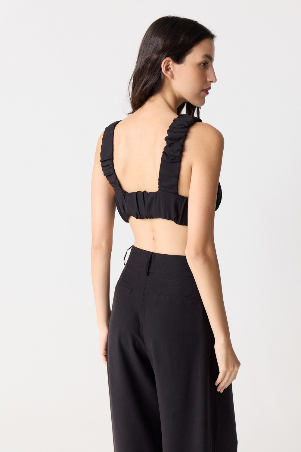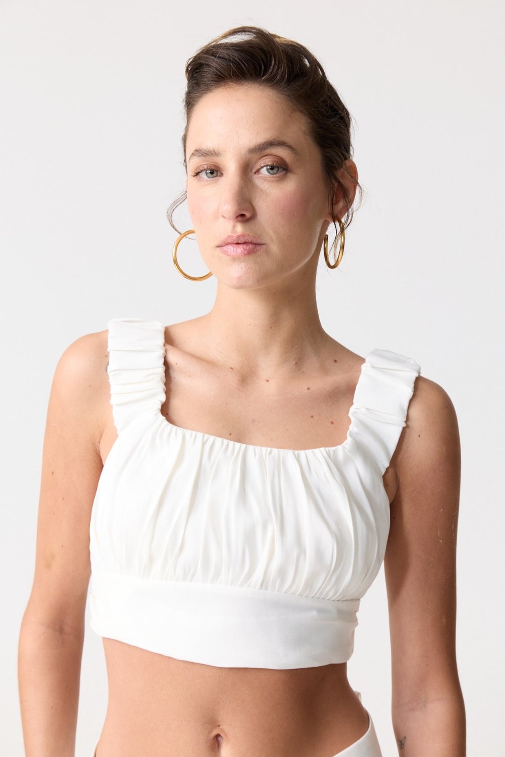 El TOP MINERVA es un top crop sin mangas que combina estilo y comodidad. Con nudo en el busto, breteles anchos y seda elastizada, ofrece suavidad, soporte y un ajuste perfecto para cualquier ocasión.