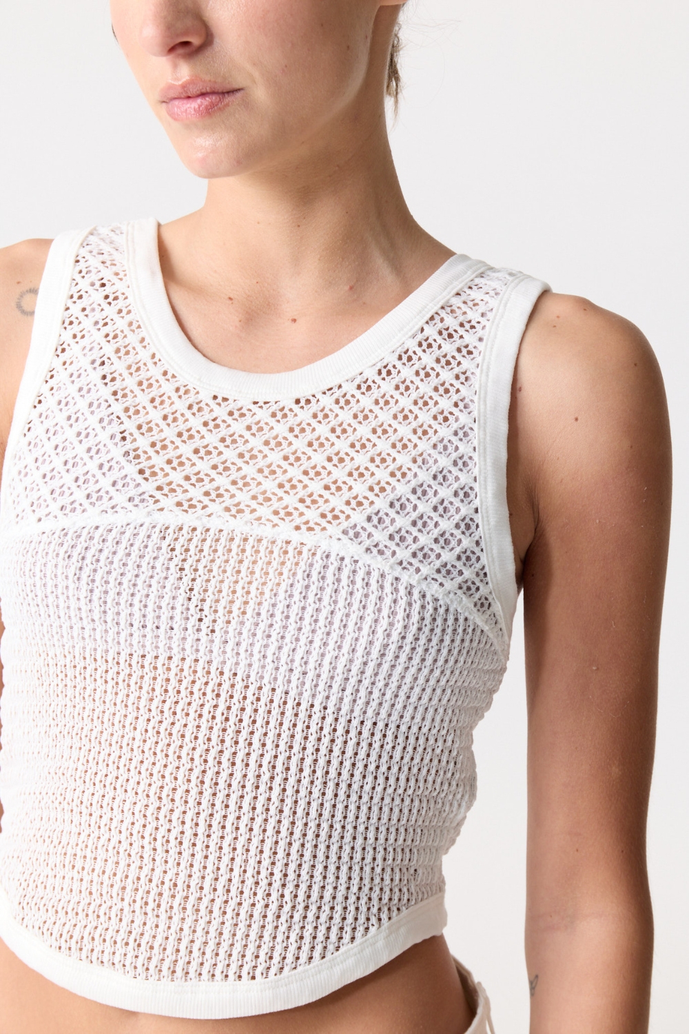 El TOP PUNTI es una prenda esencial que combina estilo y comodidad. Confeccionado en tejido de crochet de alta calidad, ofrece frescura, delicadeza y versatilidad para cualquier look.