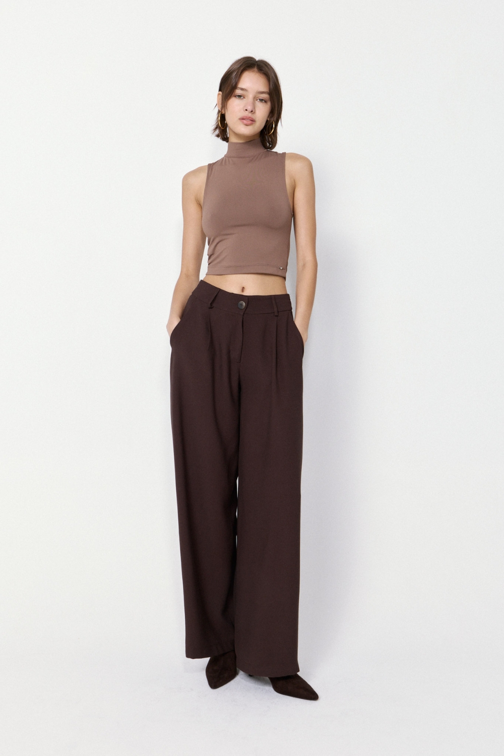 Top sastrero entallado con escote halter y botones al frente. Ideal para un look moderno y súper canchero.