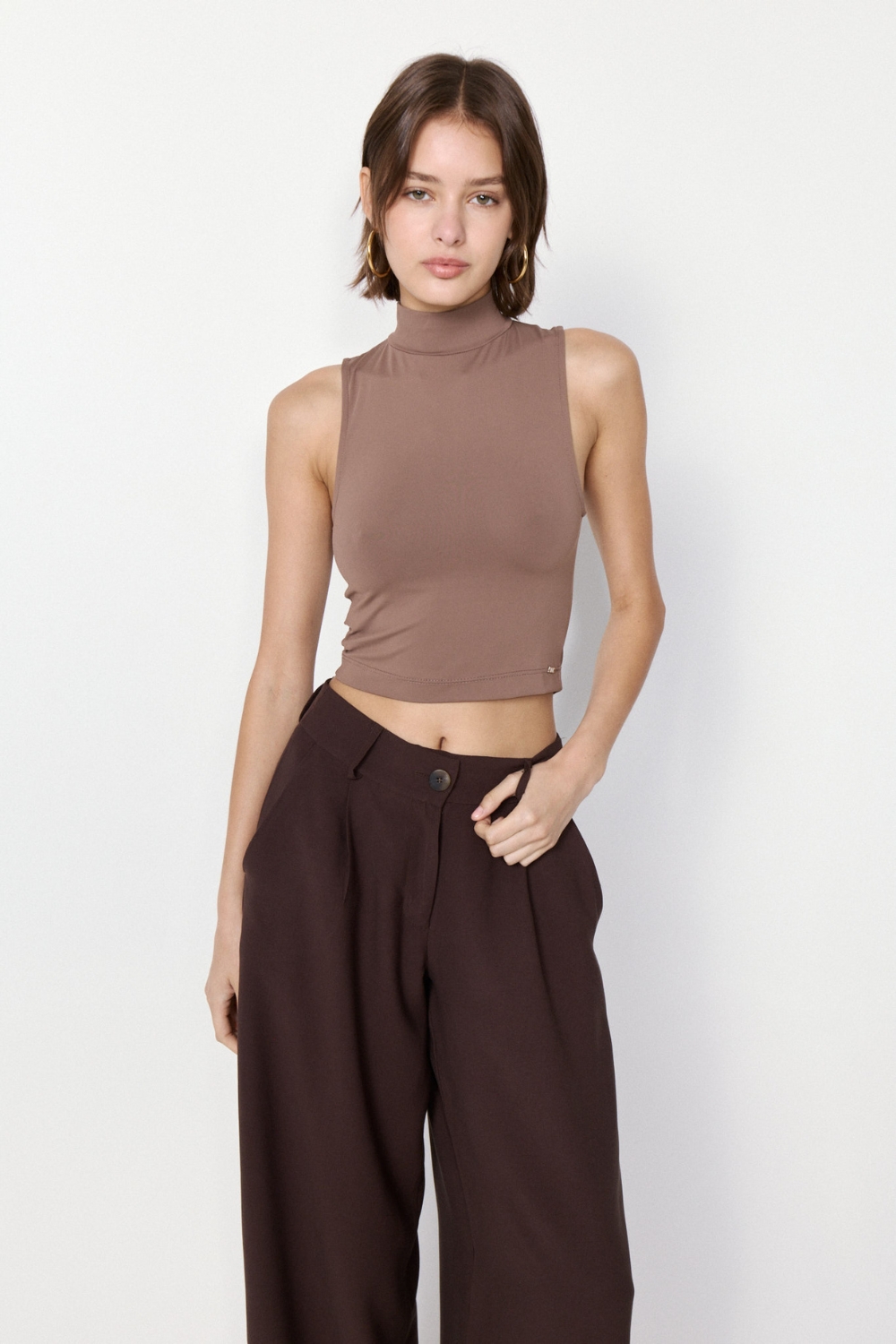Top SLIM tipo polera sin mangas en microfibra de alta calidad. Con bordado al tono que aporta un detalle sutil y elegante. Cómodo y versátil para el uso diario.