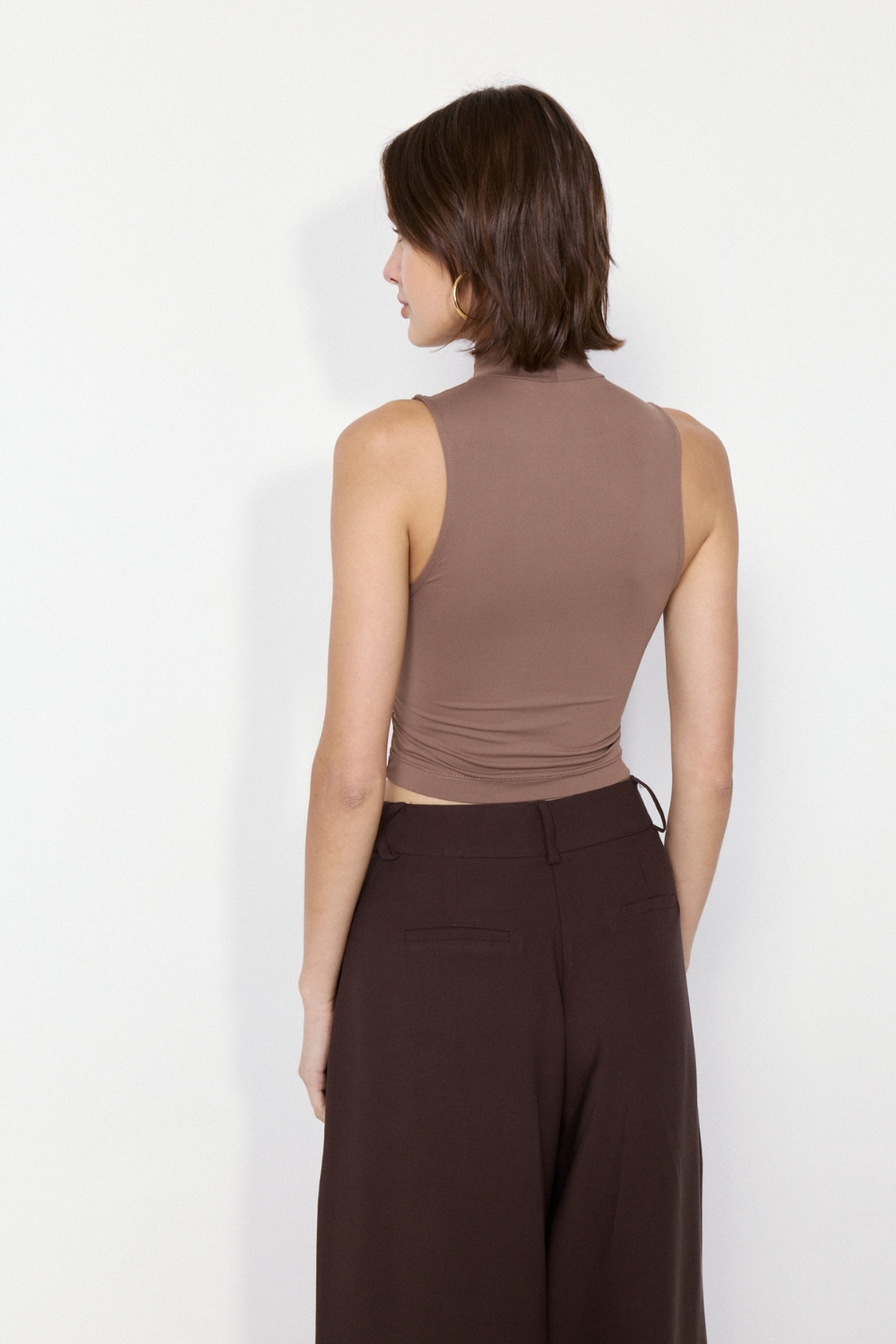 Body confeccionado en tejido suave y elastizado, con escote cerrado y diseño sin mangas. Ajuste cómodo y favorecedor.